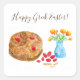 Aquarelle Happy Greek Easter Eggs Carré Sticker avec Tsoureki grec avec cookies. Cela aurait l'air bien sur un sac cadeau avec des cookies grecs de la fête.