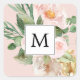Sticker Carré Aquarelle moderne Fleurs roses Monogrammes