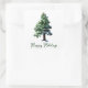 Sticker Carré Aquarelle Pine Tree Joyeuses Fêtes Noël