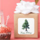 Aquarelle Pine Tree Happy Holidays Sticker de Noël. Décorez vos cadeaux pour les vacances de Noël. Vous pouvez modifier ou effacer le texte.