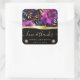 Sticker Carré Aquarelle Purple et Fleurs Turquoises Mariage