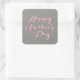 Sticker Carré Aquarelle Script, Bonne fête des mères, rose, gris