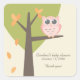 Brown branche d'arbre mignon hibou rose Merci d'automne Baby shower . stickers baby shower à thème d'automne carré, par red_dress, avec un tronc d'arbre marron, un arbre vert, des feuilles orange et un hibou rose (dessin), avec de grands yeux, assis sur une branche d'arbre marron, imprimé sur un arrière - plan beige / écru. Personnalisez facilement les autocollants "Merci" du baby shower d'automne avec les détails de votre fête et les couleurs arrière - plans préférées.
