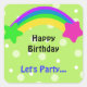 Sticker Carré Arc en ciel avec étoiles Voeux d'anniversaire