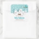 Cet autocollant mignon et amusant baby shower dispose d'une adorable famille de renards arctiques dans un cadre merveilleux d'hiver avec des arbres enneigés et un oiseau bleu sur une branche avec saint. Dans l'arrière - plan se trouve un ciel vert bleu turquoise et des flocons de neige tombants. Le texte combine les polices décoratives et sans serif pour un look élégant et moderne. C'est parfait pour un baby shower à thème de Noël ou d'hiver.