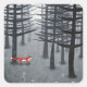 Un renard rouge sauvage se dresse au milieu des pins dans une forêt sombre. Une peinture paysagère pour la faune, la nature et les amoureux des animaux.