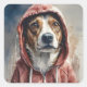 Chien adorable aux beaux yeux bruns habillé d'un sweat - shirt à capuche rouge sur cet autocollant carré. Idéal pour les journaux, les carnets, les journaux, les ordinateurs portables, les bouteilles d'eau, les paquets cadeaux, les enveloppes, etc.