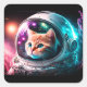 Sticker Carré Astronaut de chat spatial drôle Kitty Galaxy Unive