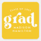 Autocollants de graduation élégants avec "grad" en caractères blancs gras avec un arrière - plan jaune (la couleur arrière - plan est modifiable). Personnalisez les autocollants jaunes de graduation en ajoutant le nom du diplômé et l'année de graduation. Les autocollants de graduation personnalisés sont parfaits pour sceller les enveloppes, les sacs de faveur de graduation, et plus encore!