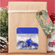 Élégant autocollant cadeau de Noël et de Nouvel An en argent avec des billes de Noël bleues, lumières étincelantes, bricolage et espace pour votre texte.