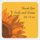 Apposez ces jolies tournesol orange carré sur le Merci Mariage jaune Favor Stickers Tag à la fête favors pour votre douche nuptiale d'été ou d'automne ou réception de mariage. Ces joyeuses étiquettes de faveur de mariage botanique personnalisées présentent une photo florale numériquement rehaussée d'une fleur de tournesol orange sur un arrière - plan jaune doré.