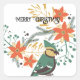 Sticker Carré Balises cadeaux Retro Merry Christmas