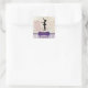 Mignons autocollants d'anniversaire avec une silhouette de ballerine sur un joli arrière - plan. Cette élégante danseuse de ballet se tient sur ses orteils, en pointe avec ses bras tendus avec grâce. L'arrière - plan est composé d'un motif d'aspect vintage et abîmé, aux fleurs de fleurs. Une plaque décorative violette porte le nom du destinataire. Sous le titre de l'événement, exemple "6ème anniversaire" La partie inférieure du design présente des rayures de lavande de style vintage alternant dans les couleurs foncées et claires.
