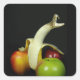 Tête de serpent de bétail qui se transforme en banane avec des pommes sur le noir.