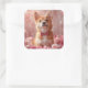 Sticker Carré Basenji avec Rose - Saint Valentin
