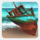 AI Généré des oeuvres d'art. Bateau turquoise et rouge abandonné en bord de mer.