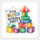 Une joyeuse scène de fête d'anniversaire remplie de rire et de créativité quand les enfants construisent des tours et des structures en utilisant des blocs colorés. Des cubes, des cylindres et des triangles de couleurs vives éveillent l'imagination, le travail d'équipe et le plaisir pratique dans un environnement joyeux et engageant. Parfait pour une célébration ludique qui encourage l'apprentissage et l'amitié.