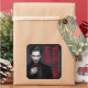 Happy Halloween autocollant avec un beau vampire pâle tenant un verre de sang et le texte "Happy Halloween" dans une police rouge, ornée, en détresse. Nom ou texte personnalisable.