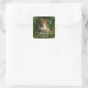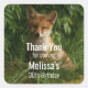 Sticker Carré Bébé Fox dans une forêt verte Anniversaire Merci