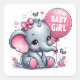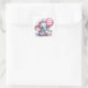 Sticker Carré Bébé mignon Eléphant avec fleurs, Coeurs