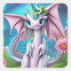Sticker Carré Bébé mignon et souriant Dragon aux fleurs