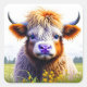 Sticker Carré Bébé mignon vache Highland en champ ou en fleurs