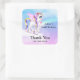Entreprise "merci pour votre commande" autocollants avec une image d'une licorne avec de grands yeux bleus, ailes roses et une crinière arc-en-ciel et queue. Kawaii mignon.