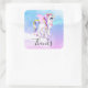 Sticker Carré Belle licorne avec Rainbow Mane Merci