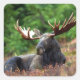 Belle orignal avec de grands bois sur le sol avec des arbres verts dans l'arrière - plan. Un grand cadeau pour votre mère, votre père, votre soeur, tout autre parent, personne aimée, vous dans l'anniversaire, anniversaire, Noël ou tout autre jour spécial.