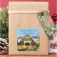 Sticker Carré à feuillage persistant Automne/Récolte Grange 3". Belle grange historique ornée de vitraux centenaires. Décoré pour l'automne mariages et fête pour les amis, la famille. Buffalo et Yak se tiennent au loin. Utilisez le message existant ou personnalisez la carte avec votre propre message et le nom de famille ou de l'entreprise. "Bienvenue à la grange" !