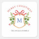 Autocollants de vacances élégants et personnalisés avec un blason à l'aquarelle peinte à la main avec de la verdure hivernale et votre monogramme au centre.