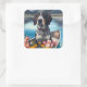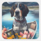 Sticker Carré Bleu Coonhound sur une pagaie : une aventure Pitto