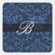Sticker Carré Bleu damas avec monogramme calligraphie B