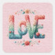 Le mot LOVE en tricot dans un dégradé rose à bleu