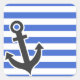 Sticker Carré Bleu Han Rayures horizontales ; Ancre Nautique