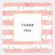 stickers Merci avec un élégant motif. Dotée de rayures rose vif et de parties scintillant de confettis en faux or éparpillés un peu partout. Un carré blanc avec une fausse bordure en feuille d'or superposée, avec votre texte personnalisé à l'intérieur.
