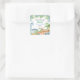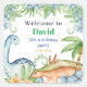 Sticker Carré Bleu & Vert Dinosaur fête d'anniversaire fleurie C