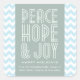 Envoyez un accueil contemporain en cette période de fêtes. Cet autocollant présente les mots "Paix, Espoir et Joie", rendus dans une police moderne sur un panneau gris bleu sur un arrière - plan à motif de chevron bleu. Grand comme une étiquette cadeau ou une faveur. Disponible en couleurs alternatives avec produits correspondants. com