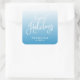 Happiest Holiday carré autocollant avec les mots "Happiest Holidays" dans un script de brosse amusant contre un arrière - plan dégradé bleu. Fabrique un autocollant pour Noël / Vacances d'hiver. Consultez d'autres articles de vacances ici https://www.zazzle.com/collections/holiday_christmas_new_year_cards-119015800351034065?rf=238364477188679314 Personnalisez-le en remplaçant le texte de l'espace réservé. Pour plus d'options, cliquez sur le bouton "Personnaliser". *Veuillez noter que le filigrane Zazzle qui apparaît dans l'aperçu du zoom n'apparaîtra PAS sur le produit imprimé final. © Bois de rose et agrumes