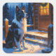 Sticker Carré Border Collie With Christmas Lights Holiday