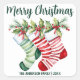 Ajoutez une touche personnelle à votre période de fêtes avec cet autocollant festif de Noël! Doté de "Joyeux Noël" en écriture élégante et de trois bas traditionnels ornés de saints, ce design aquarelle est doux et accueillant. Customisez la zone de texte avec votre nom de famille et votre année pour en faire la vôtre. Parfait pour les cadeaux et la correspondance de vacances !