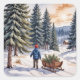 Sticker Carré Boy Pulling a Sled With Christmas Evergreen Boughs