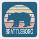 Qu'il s'agisse de randonnée, de vélo, de camping, de pataugeoire, de pêche ou de ski, Brattleboro Vermont est un centre de sports d'aventure. Ce grand design a un ours dans un ovale aux couleurs pastel avec un look déprimé.
