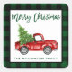 Brosse Script Aquarelle Rouge Camion Vintage avec arbre de Noël - Joyeux Noël Nom de famille Enveloppe Sceau - Vert Plaid