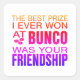 Texte de style typographique moderne pour votre meilleur ami Bunco. Bunco dice sentiment : Le meilleur prix que j'ai jamais gagné à Bunco a été votre amitié. Coloré et fait uniquement pour les joueurs de Bunco.