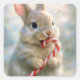 Sticker Carré Bunny Rabbit Nibbling On a Candy Cane