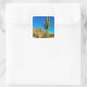 La photographie présente un grand cactus saguaro multi-armé par un sentier randonnée qui mène vers une montagne de rochers jonchée dans le désert de Sonoran.