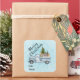 Joyeux stickers de Noël avec un design festif de vacances. Un camion transportant des pins de Noël avec des animaux de la forêt. Un ours, un renard et un cerf debout dans le dos, se balade. Design créé avec aquarelles.