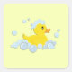 Petit canard en caoutchouc jaune mignon nageant en bulles bleues