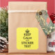 Coutume carré jaune bon marché Conserver les autocollants Calm. Créez votre propre calme et continuez à mème. Personnalisez avec du texte et des couleurs. Typographie moderne avec logo de couronne. Disponible en petits et grands. Changez la quantité pour obtenir le prix en vrac le moins cher.